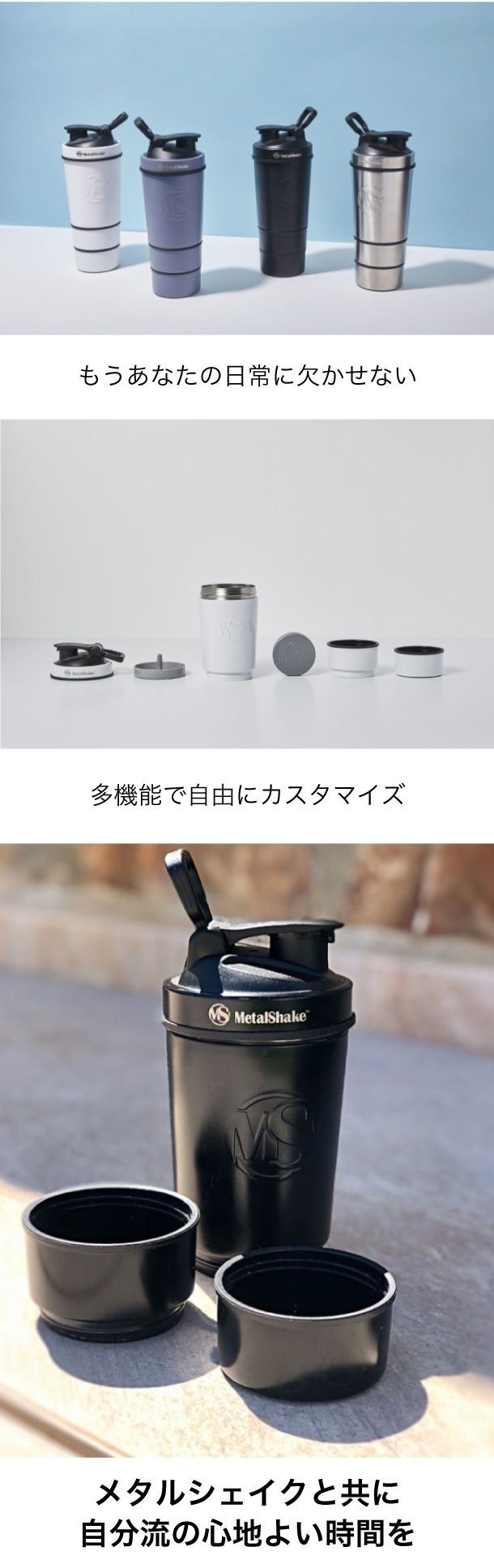 最初のシェーカーを発売して以来、私たちは製品を開発し、特許を取得し、今日の多機能ボトルになりました。単なるシェイカーではなく、使い方を最適化し、変化させ、日常生活をシンプルにするための多機能性を求めました。