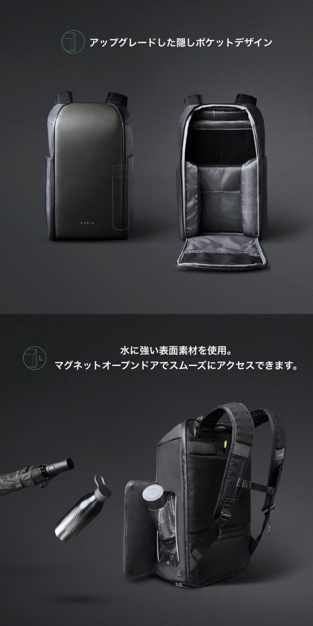 ハイスペックでハイセンスな防犯対策バッグをリリースするKorinDesignの最新作「FlipPack」です。今回のFlipPackは背負ったまま使える「サイドドア」が搭載されたモデルとなります。同時リリースのFlipSlingも同時開催です。