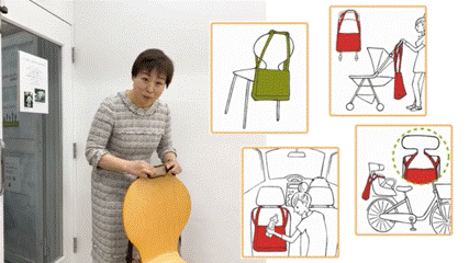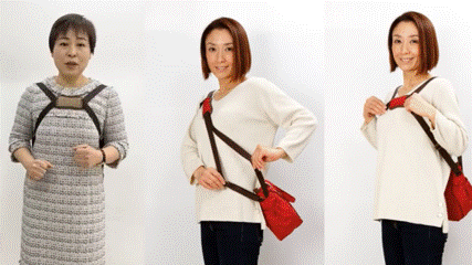 前抱えは意外なことにとても色々なシーンで便利なのでぜひ体験して頂きたいものです。長時間立っているとき、電車など座っている姿勢で(車いすも、傘や杖を持つ時も)、エコバッグやリュックとの併用で、人混みの中、ATMやレジ前での財布の出し入れ、カメラやケイタイの操作も爆ラク!