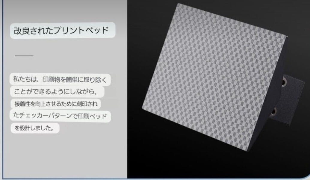 プリントベッドは、プラットフォームのより良いグリップと均一性のためにレーザー彫刻されており、プリントがより高い成功率とよりよい安定性を持つことを保証します。
