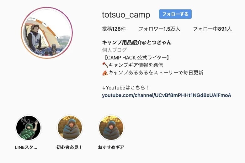 インスタグラムで1.5万人のメディアを運営している、キャンプインスタグラマーのとつきゃんと申します。