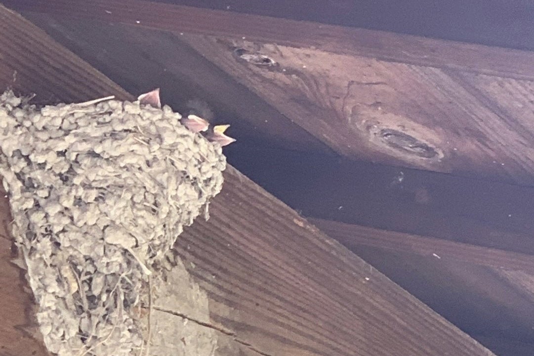 建物の柱には生命を感じるツバメの巣。