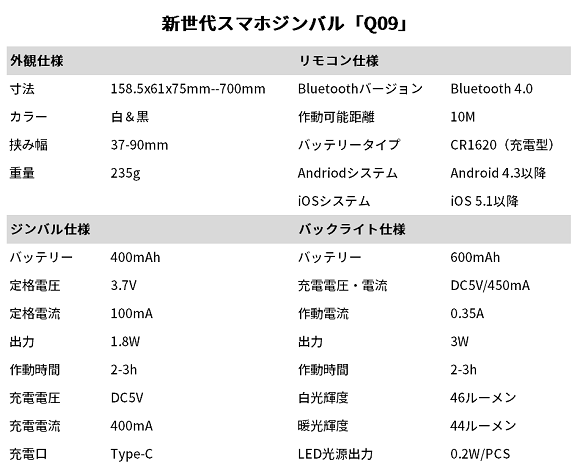 新世代スマホジンバル「Q09」の特徴