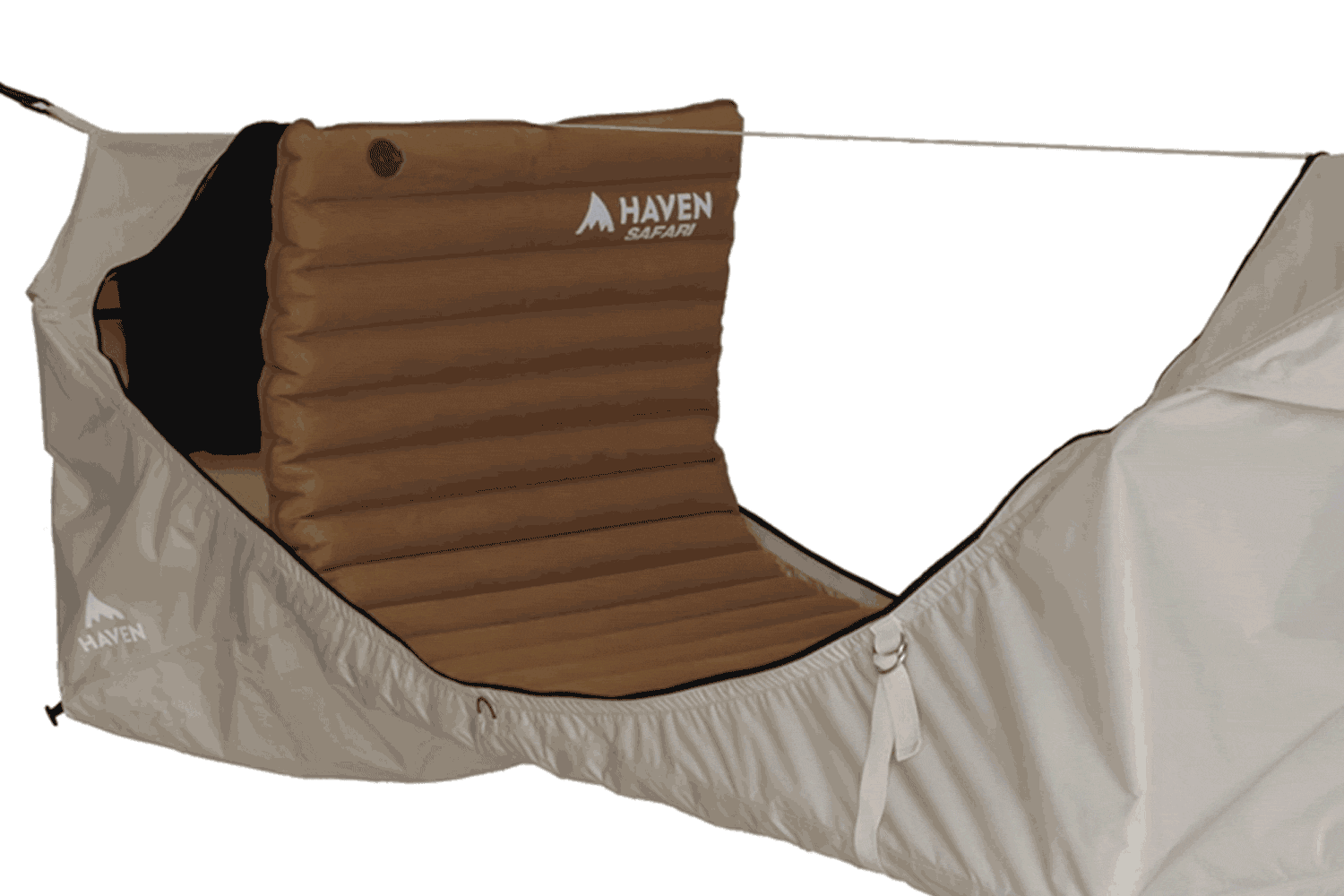 ヘブンテントはレインフライ、蚊帳、エアマットなどキャンプ泊に必要な一式が全てセットになっているので、テントが不要になります。