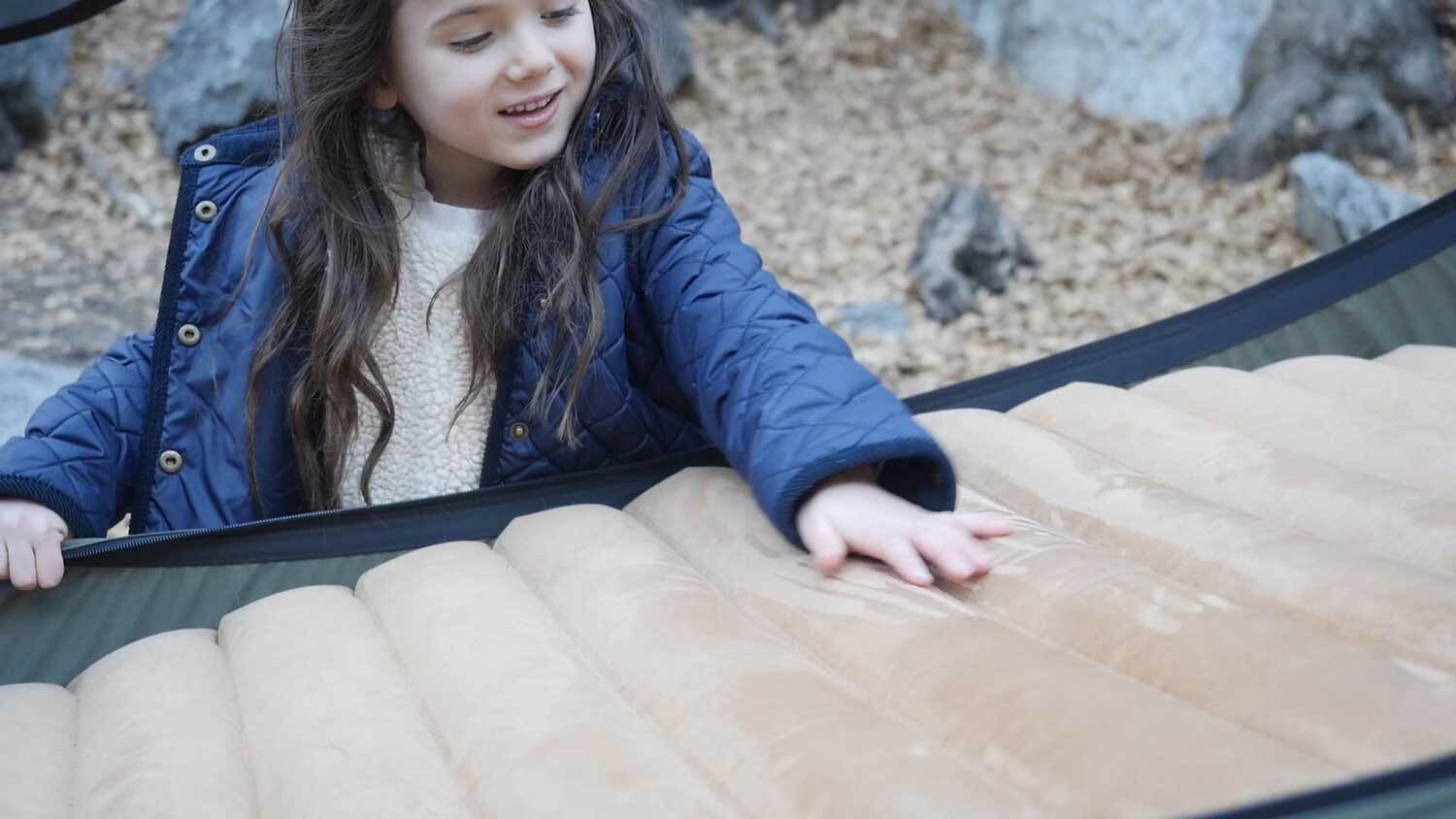 ヘブンテント・サファリならではの新機能として表面が起毛素材なので、柔らかく暖かみのある感触が味わえます。