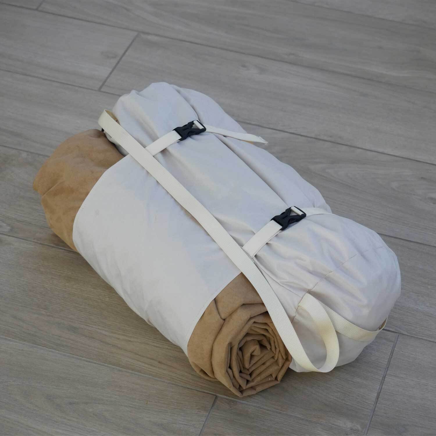 パッケージ内容:蚊帳付きハンモック、レインフライ、エアマット、バンティングバナー、ウェルカムマット、スプレッダーバー、ツリーストラップ、ペグ、ガイロープ、収納ポーチ