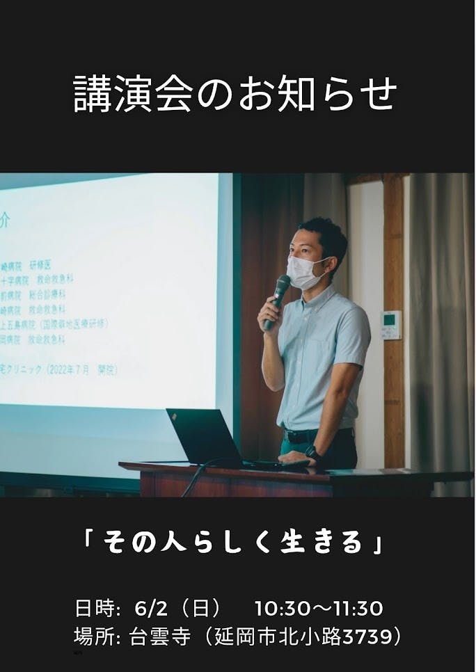 2024/05/25 10:33ご無沙汰しています。皆様にご支援いただいたクラウドファンディングをきっかけに始まった、縁・在宅クリニック (en-zaitaku.com) の地域講演活動は3年目に突入します♪・公民館や学校、病院、福祉施設にお寺、市役所や県庁などなど、いろんな場所からお声かけいただき、毎月場所を変えながら、私もクリニックスタッフも毎回楽しませてもらっています!ACP(アドバンスケアプランニング)と聞くと難しく感じる方も多いと思いますが、「自分らしく生きるために健康や医療とどう向き合うか」地域コミュニティと医療を結ぶきっかけ作りの会です。今後も忙しさを言い訳にせず、しっかりと活動を続けていきます!・・・・なかなか活動報告ができておりませんが、下記SNSやホームページで活動状況を週1回程度アップしていますのでよければフォローください!↓↓↓↓■Instagram:https://www.instagram.com/en_home_clinic/■Facebook: https://www.facebook.com/profile.php?id=100082288527041■ホームページ:https://www.en-zaitaku.com/・・・・今後ともよろしくお願いいたします。 もっと見る
