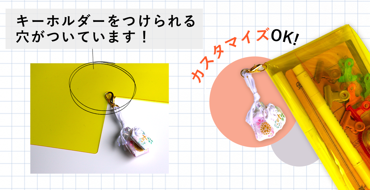 さらに!キーホルダーなどを通せる穴も開いているので、自己流カスタマイズもさらに自分だけのおしゃれを楽しむことも可能なんです!