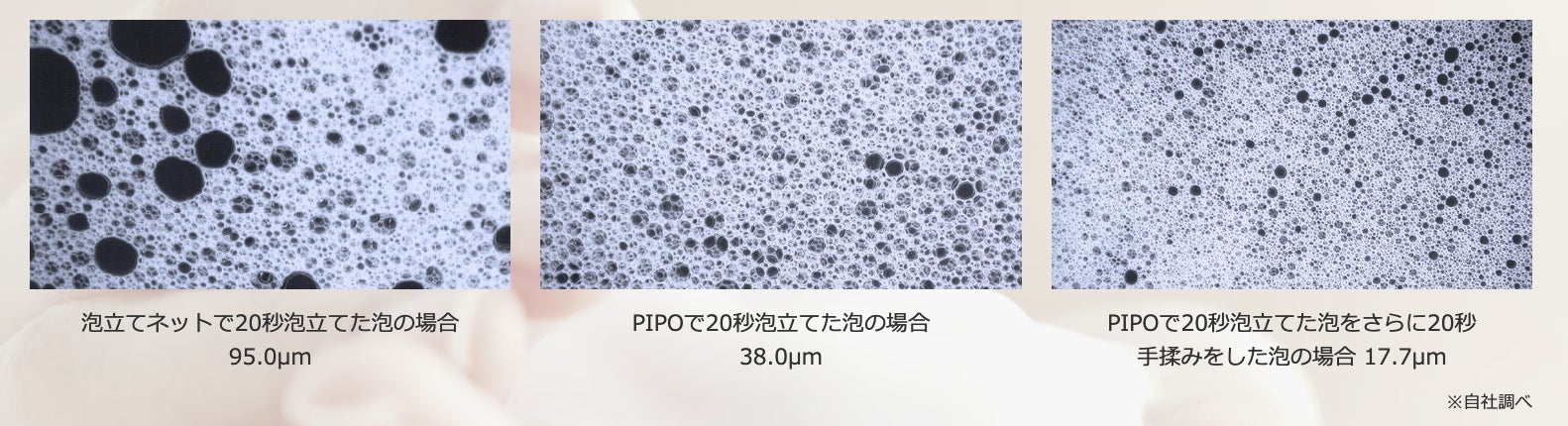また、出来上がりの泡を比較していただくと、PIPOの泡はきめ細かく、柔らかく、長持ちすることに気が付かれると思います。