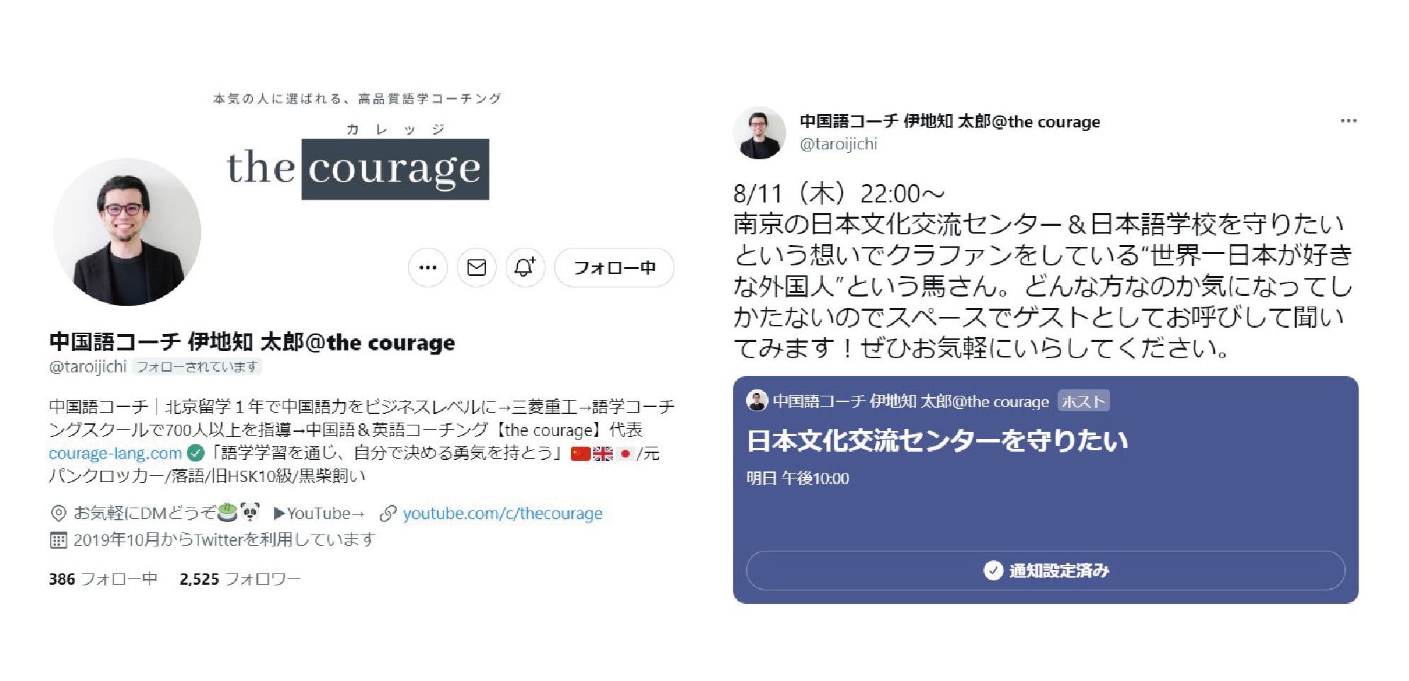 【お知らせ】8月11日(木)夜22時に、 中国語コーチ伊地知太郎さんとTwitterのスペース機能を使って対談