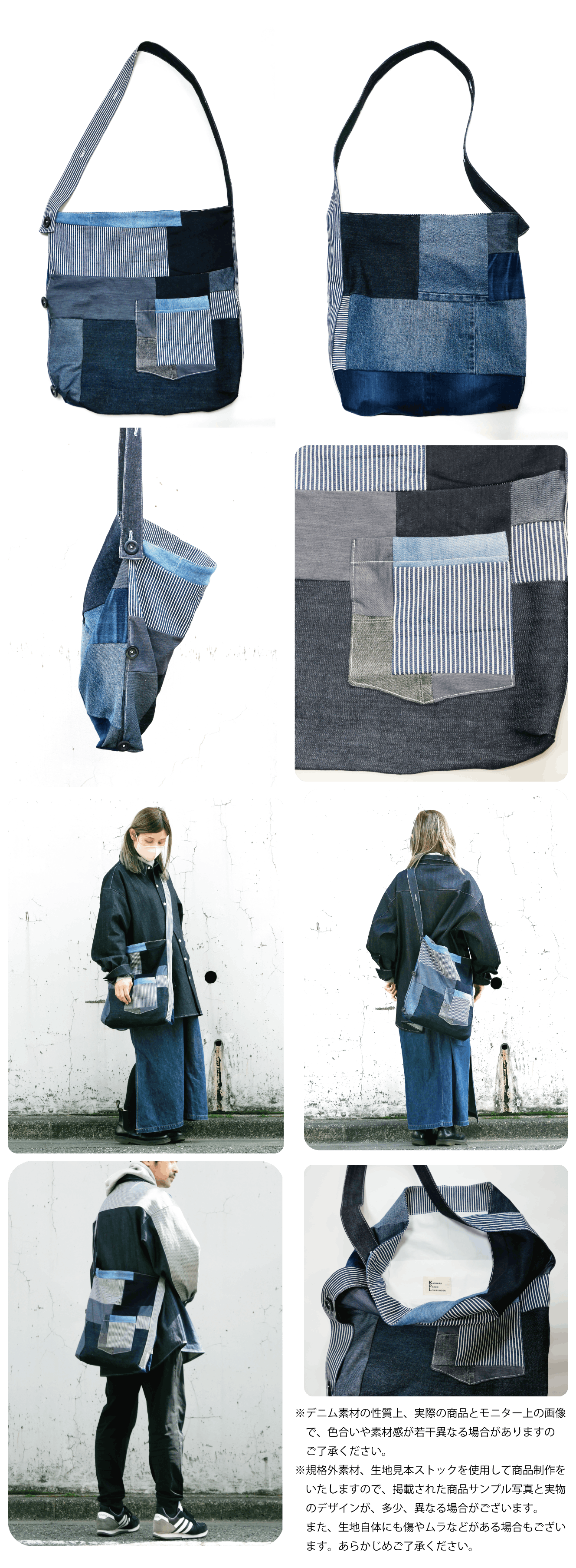 今回のオリジナル・デニムシャツを制作する際に使用した生地を有効活用し、スペシャルアイテムとしてトートバッグを作成!!ストラップは素材違いのリバーシブルで、長さがボタンで3段階に調節できる仕様です。内布は軽くて丈夫な白のコットンタイプライタークロス生地を使用し、外ポケットはスマホが入る大きさ(横16cm✖️縦17cm)、内ポケットはB5ノートがちょうど入る大きさ(横27cm✖️縦20cm)です。