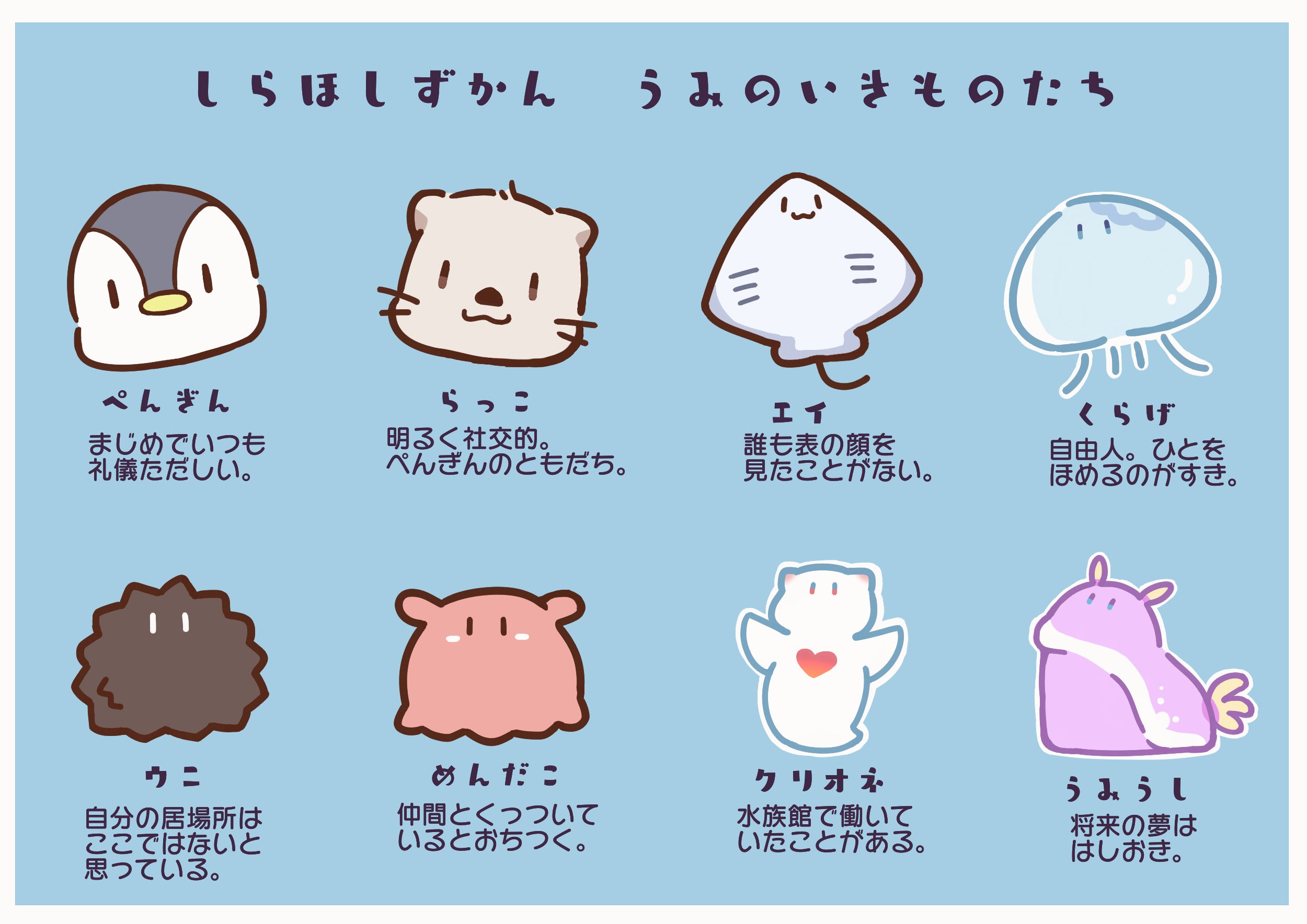 地球によく似た「しら星」の海に住むいきものたちの、ゆるいお話。