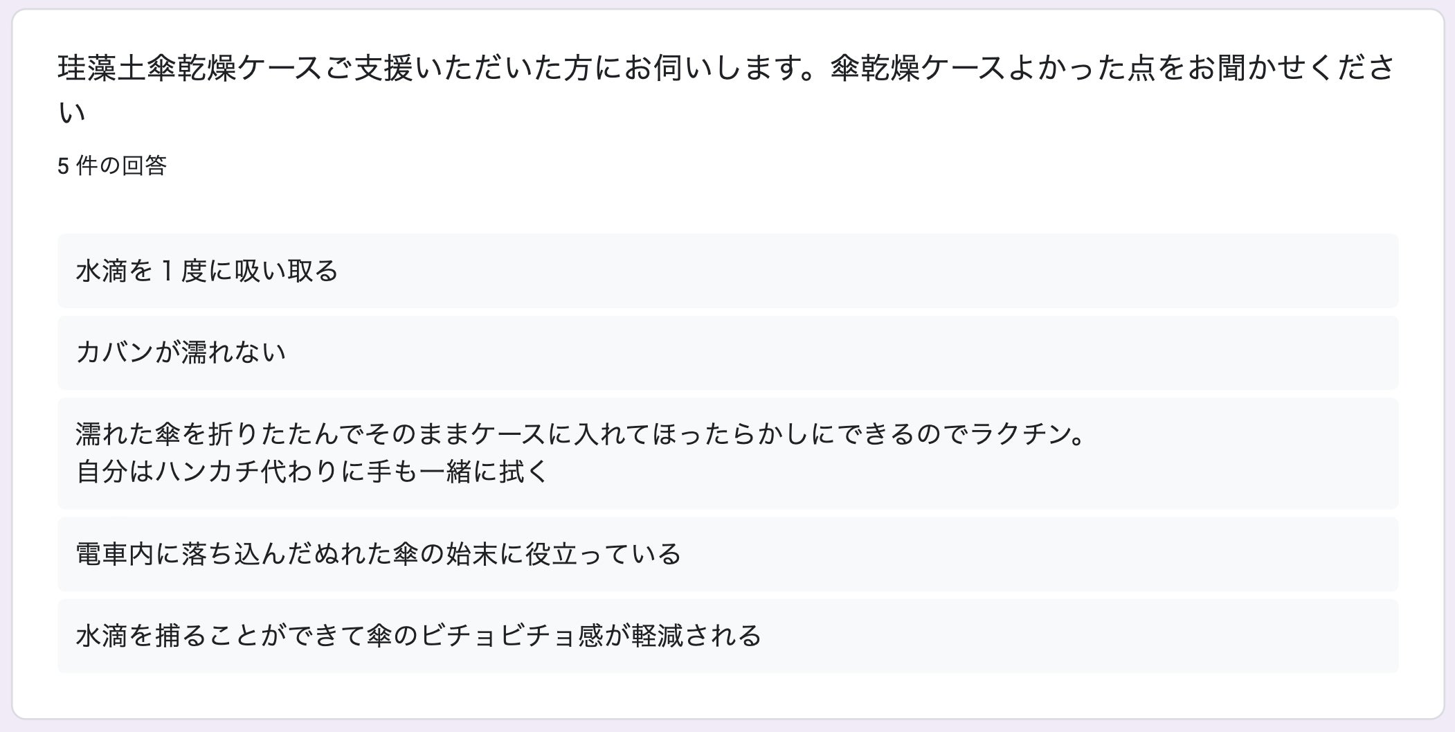 昨年の傘乾燥ケース ユーザー様 アンケート結果