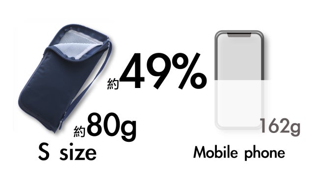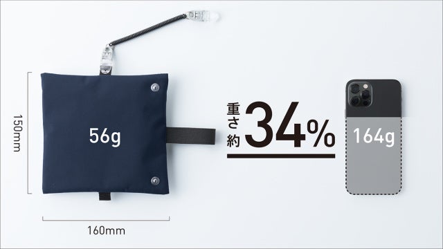 性能と携帯性の両立にチャレンジ。常に折り畳み傘とともにカバンに入れていただく為、機能性粉体が入っているのにもかかわらずスマートフォンよりも軽量化を実現いたしました。