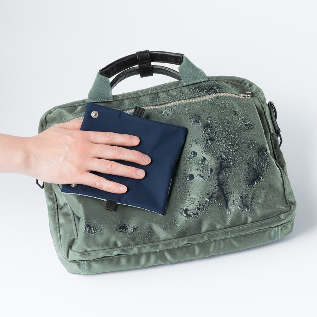 濡れたカバンも簡単サッと拭き取り。素早く水滴を吸い取ります。