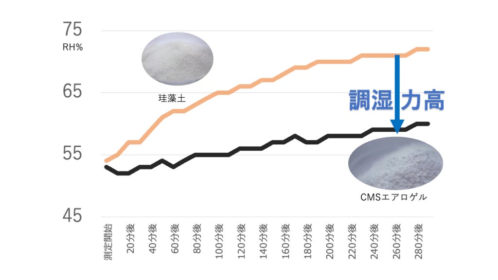 調湿力の高いCMSエアロゲルは湿度上昇を抑止しています。