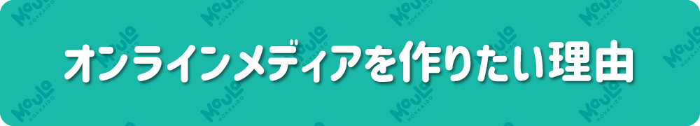 私たちがこれから立ち上げるメディアの名前は「MouLa HOKKAIDO」(モウラホッカイドウ)といいます。北海道全域の、旬で、リアルで、時にレアな情報を余すことなく「網羅」したい!との思いからネーミングを決めました!現在は「MouLa HOKKAIDO」の立ち上げを目指し有志メンバーで日々孤軍奮闘しています!