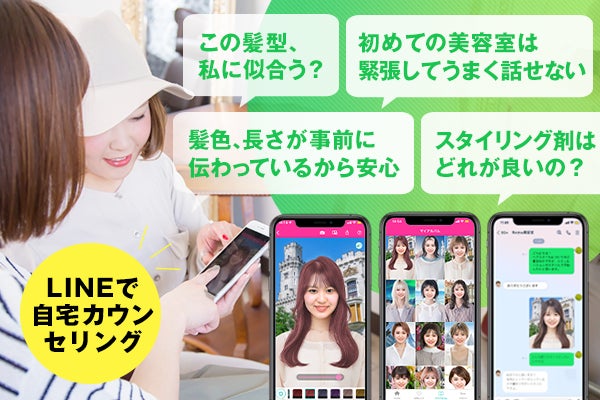 スタイリストさんから事前にアドバイスをもらうだけでなく、シミュレーションしたスタイルを見ながら、担当のスタイリストさんに髪型やカラーに関するカウンセリングをオンラインで気軽に受けることができるようになります。