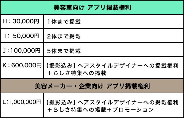 ※ < L> 御社の製品をPR。美容室・ヘアスタイル情報サイト「らしさ」上にて特集枠でご紹介します(弊社よりモデル3体・カメラマンを手配 )