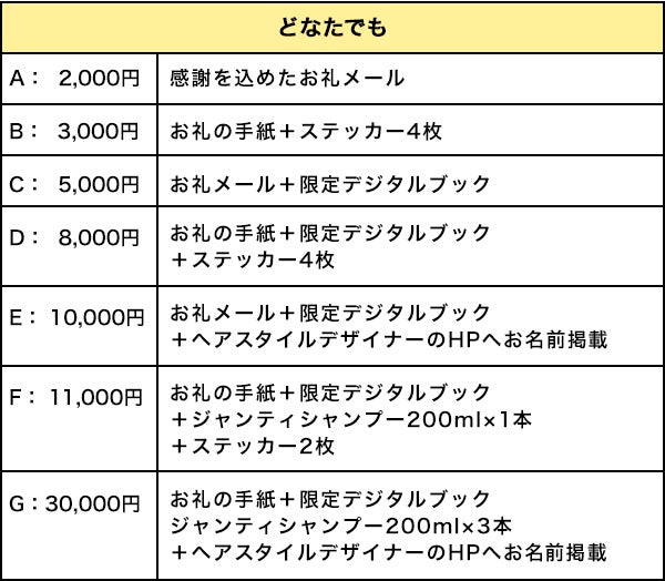 詳しくは、「◆支援コースとリターン一覧」をご確認ください。