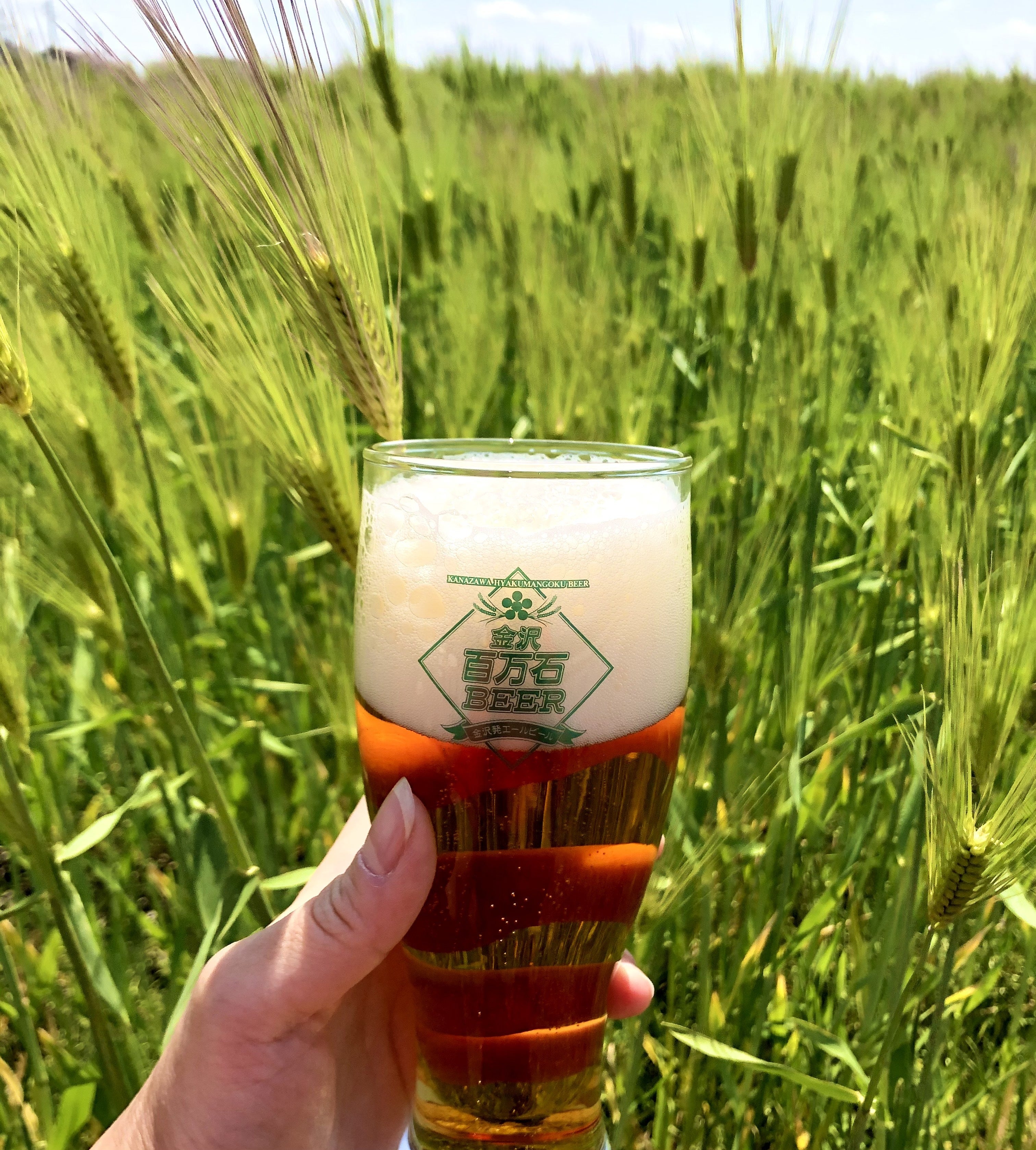 主要ブランドである『金沢百万石ビール』に実際に使用されている大麦の広大な畑。麦の収穫が近づくこの季節は麦秋と表現され、麦の畑だけがまるで秋を迎えたような幻想的な世界です。