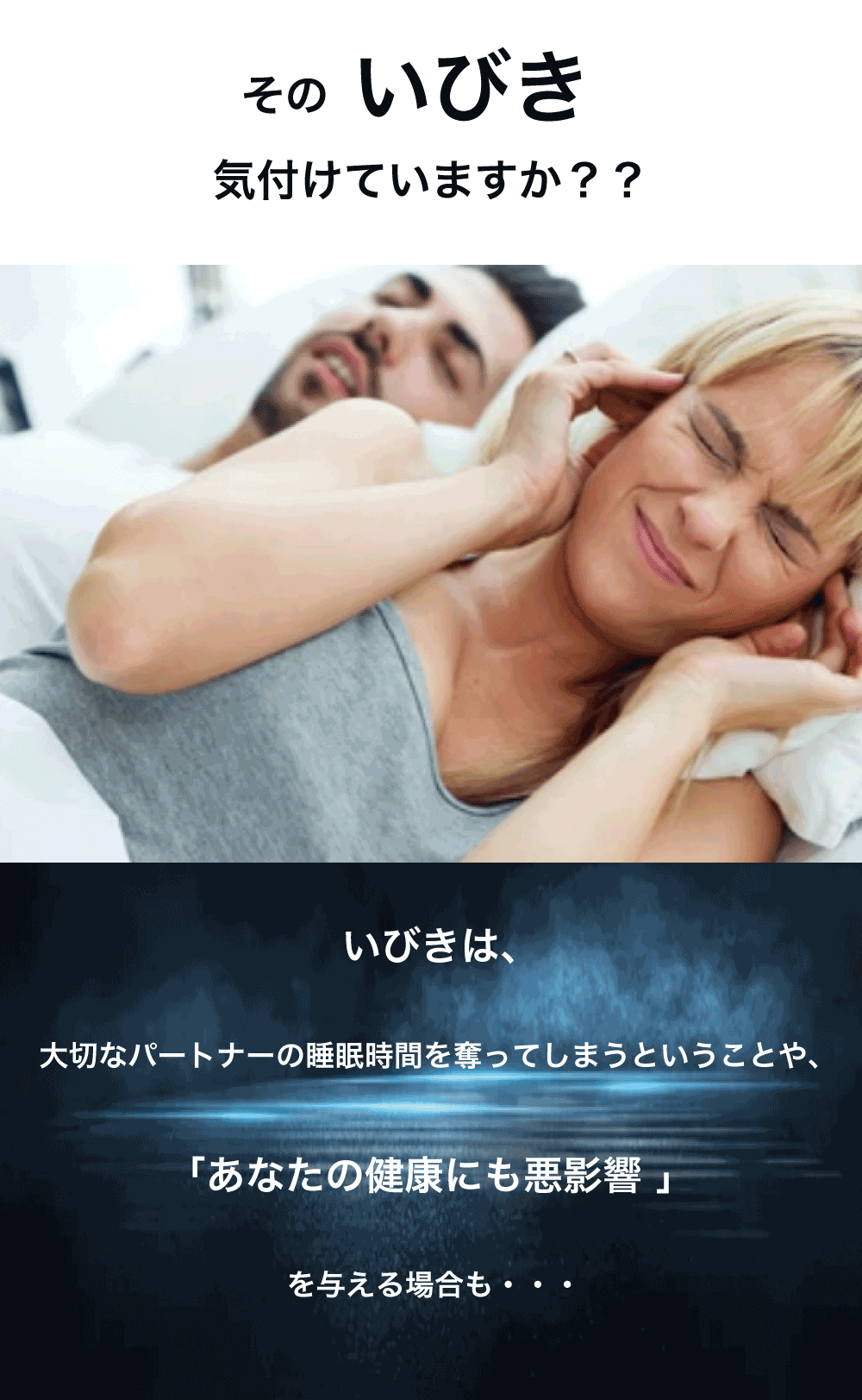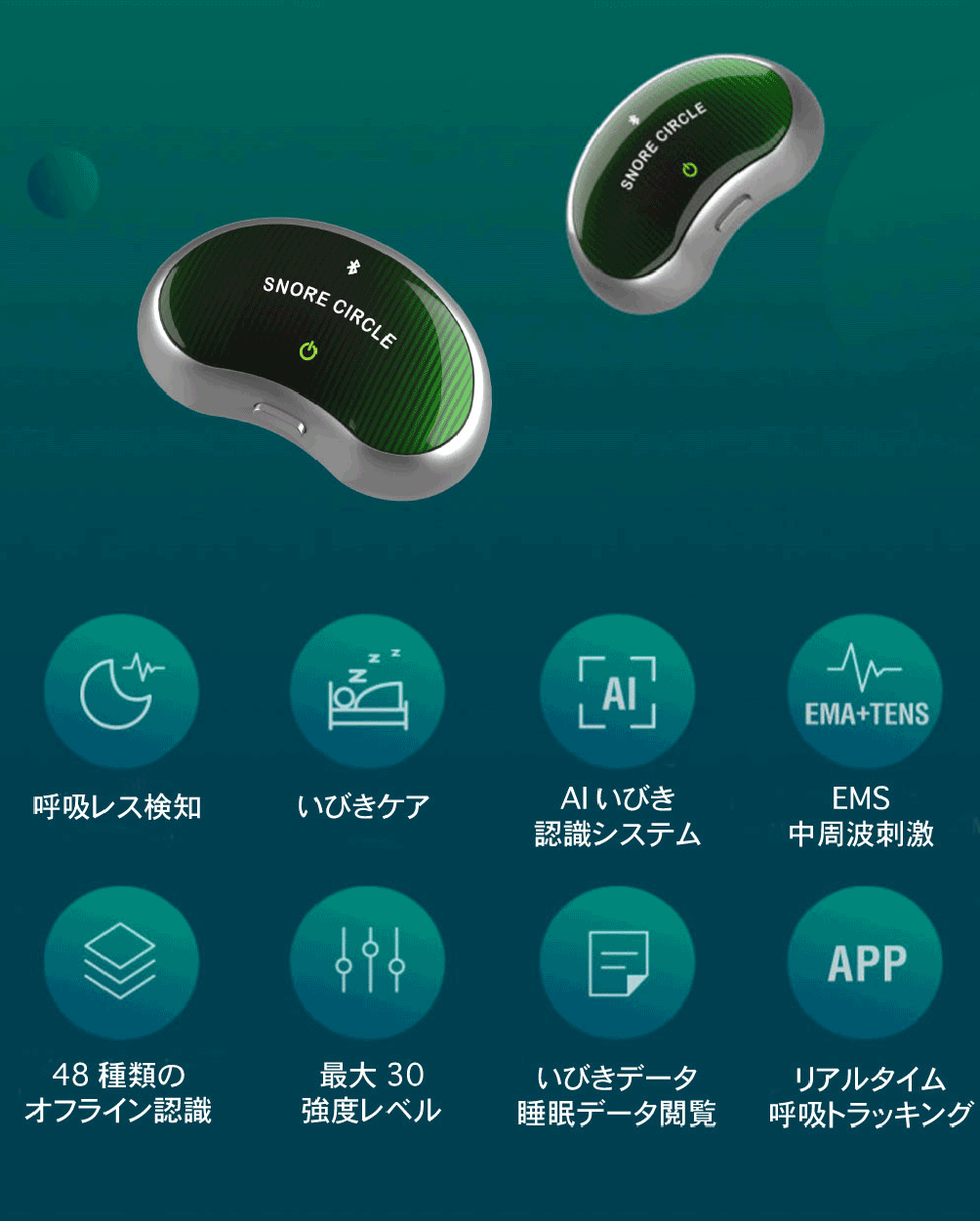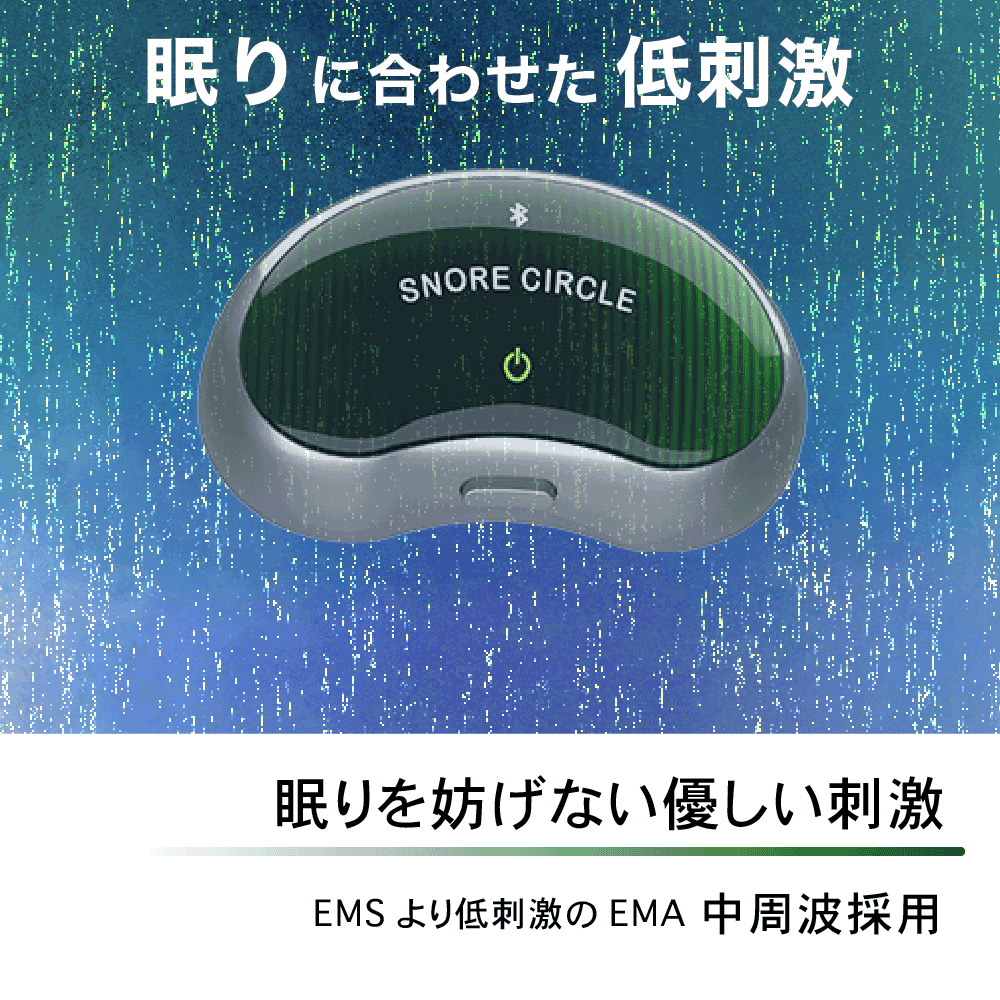 検知すると、本体から眠りを妨げない微弱なEMA中周波を発信することで発生したいびきをケアします。