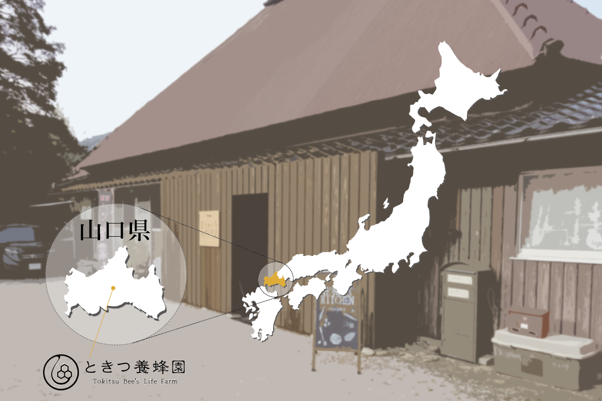当園は、山口県の中心、山口市の仁保(にほ)という土地にショップを構えています。山々に囲まれ、のどかな時間が流れるこの地域は朝晩の寒暖差が激しく、おかげで酵素の力が強い綺麗な蜜の採れる花が咲く、自然豊かな蜜源地です。
