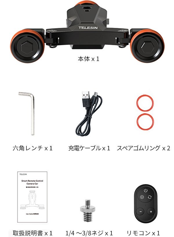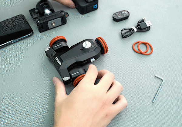 携帯性と機能性が高く、本体がコンパクトなのでいつでもどこでも気軽に撮影を開始できます。手動で移動する撮影ドリーとは異なり、「TELESIN」は1.5時間の充電で最大5時間の使用が可能、そしてリモコンで遠隔操作ができる移動式撮影ドリーです。
