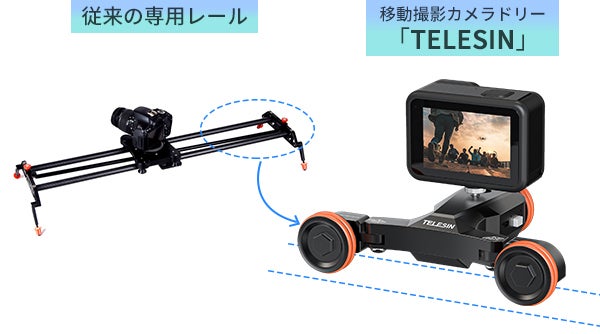 専用レールを必要とせず、「TELESIN」だけで撮影者の求める撮影効果が得られます。
