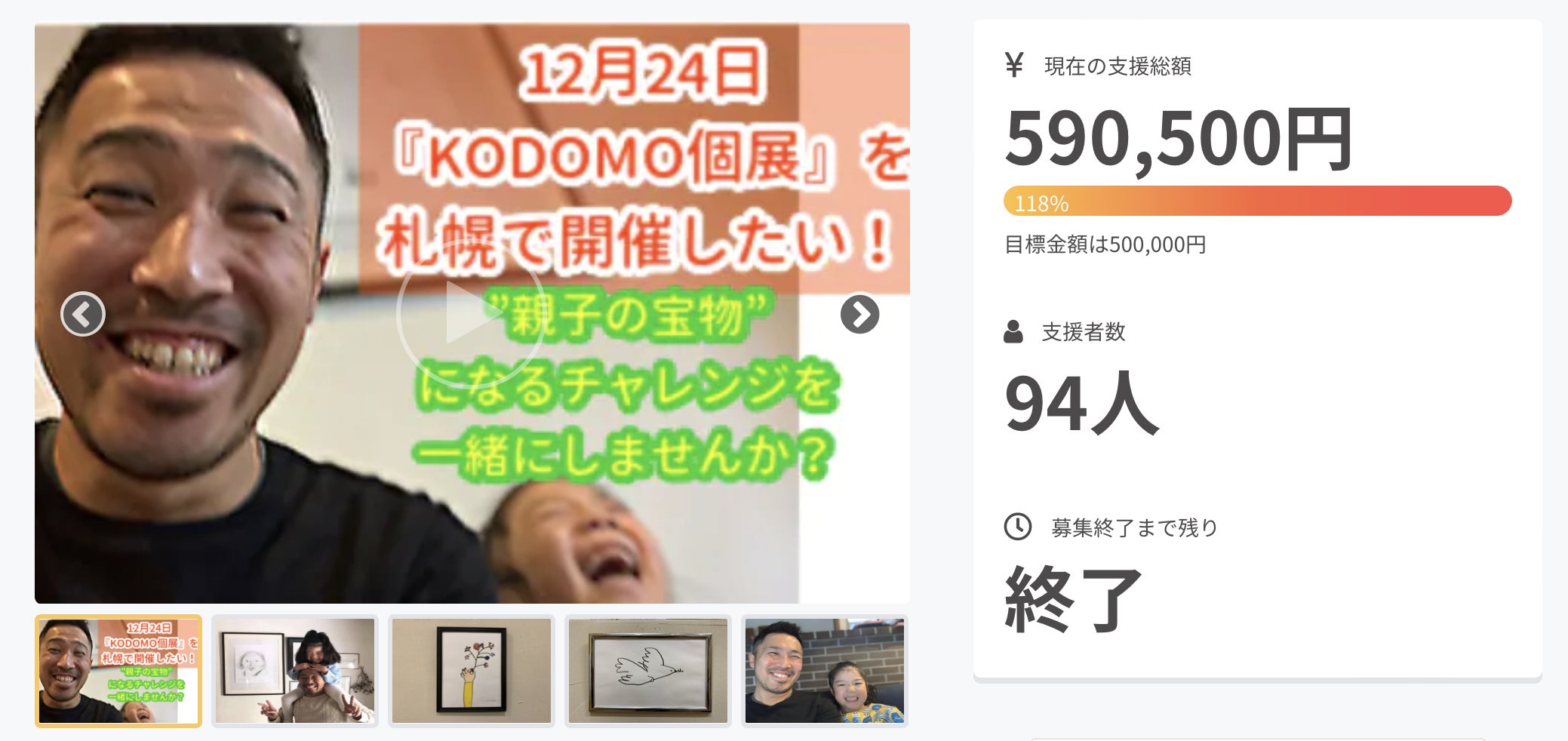 ⏬第1回KODOMO個展クラウドファンディングは2019年に開催されました。