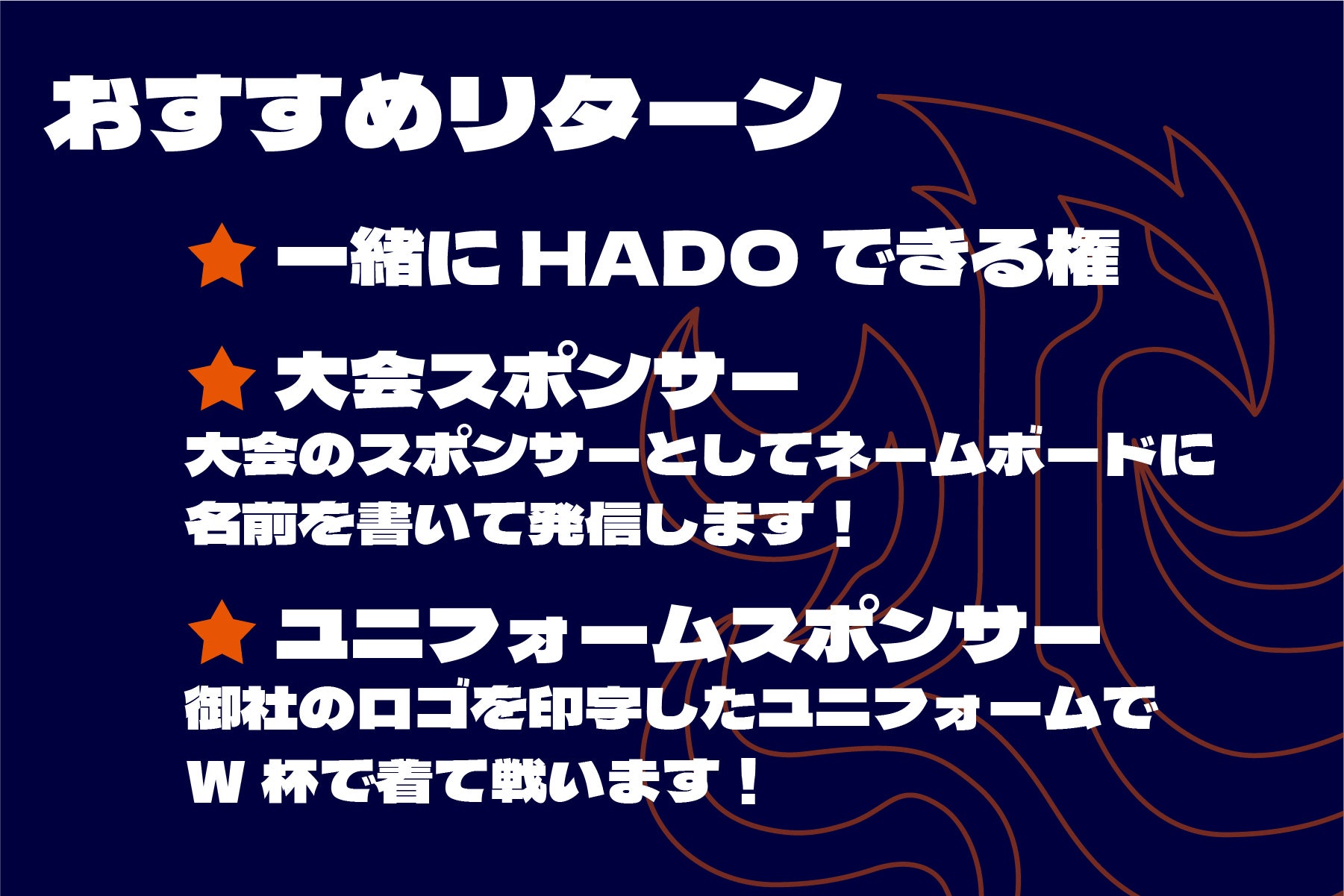 ・HADOを盛り上げてもっとHADOを知らない人にも楽しんでもらうスポーツにすること です!