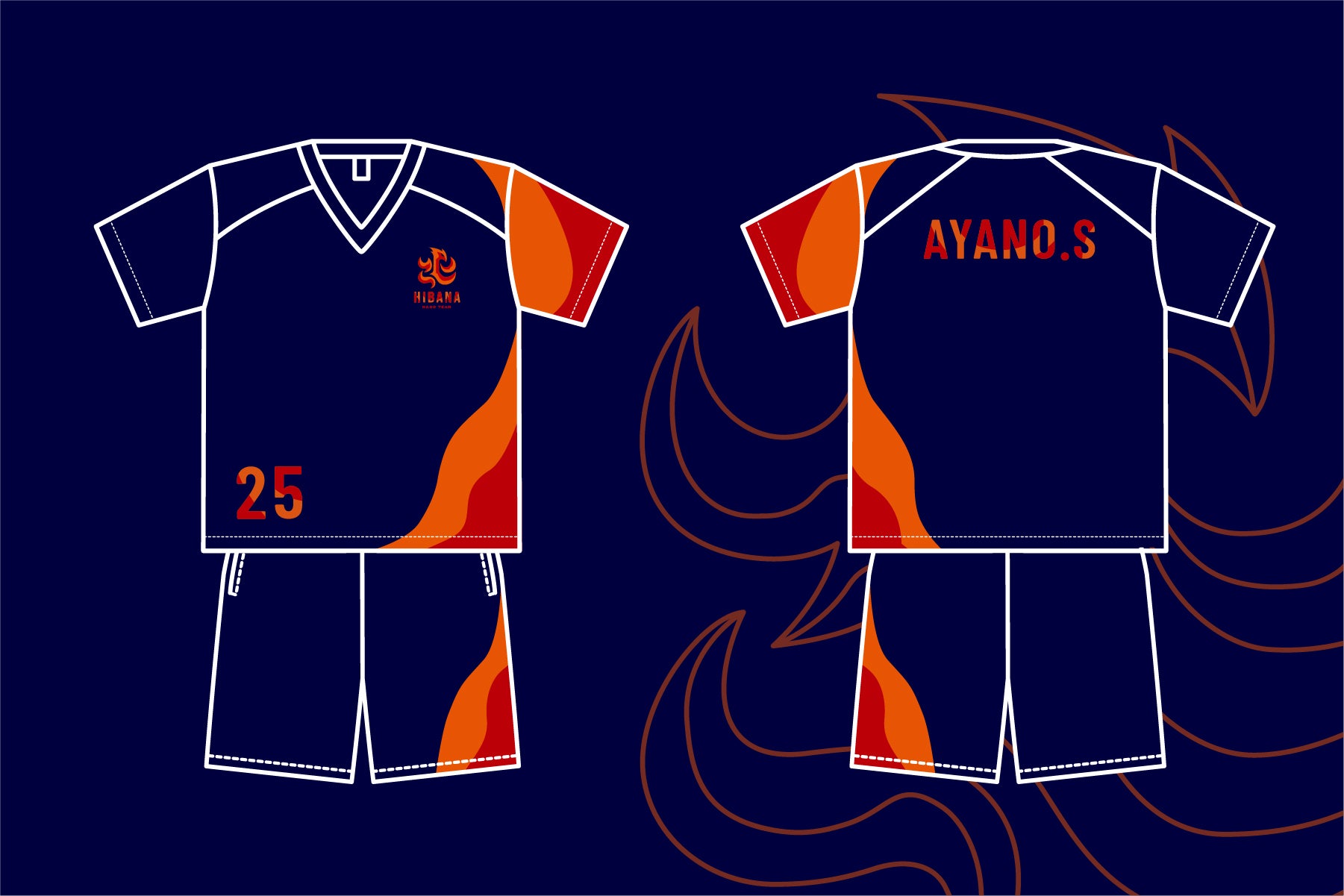 強くてかっこいいチームを作りたい!火花散る戦いをするチーム。というイメージを伝え、オレンジを基調とし、フェニックスと『火』という漢字をモチーフにしたロゴとユニフォームを作っていただけました!