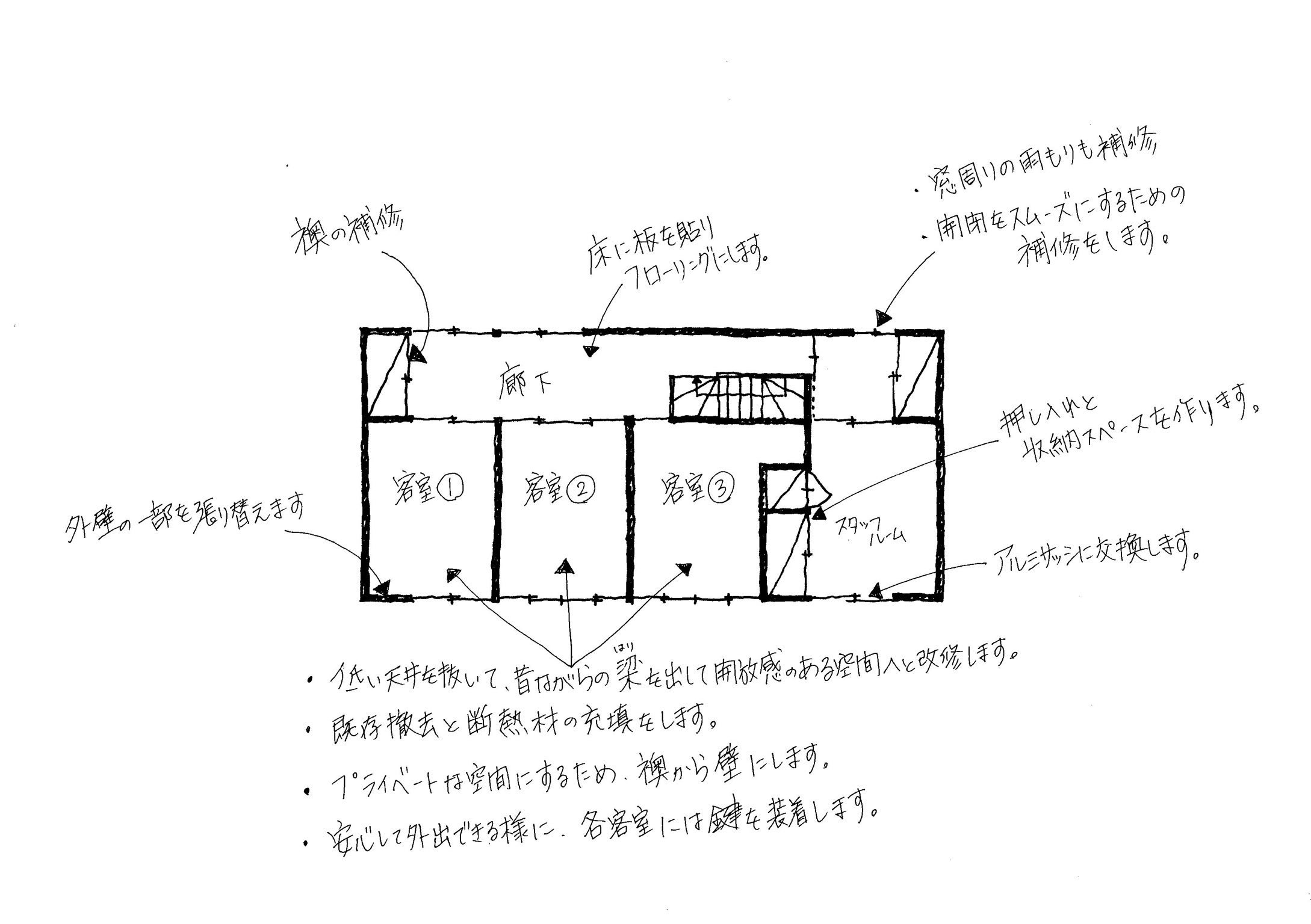 ・老朽化している部屋の補修・修繕(土間、厨房、お風呂、洗面所・階段など)