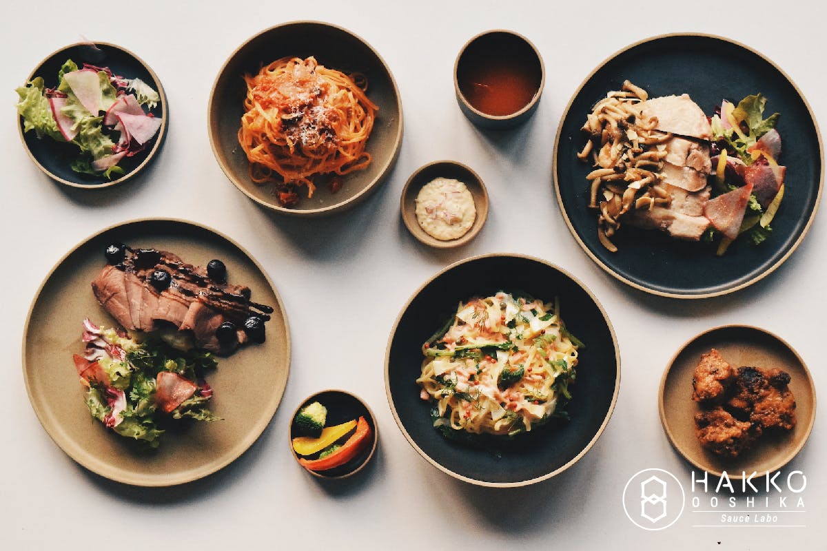 HAKKO OOSHIKAのコンセプトは発酵食品×地元食材です。発酵食品を基盤とし、大鹿村や近隣市町村で採れる食材、また信州を感じれる食材を組み合わせた様々な【ソース=Sauce】を楽しめる料理をご用意します。