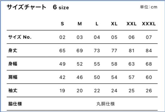 サイズ:S・M・L・XL・XXL・XXXL