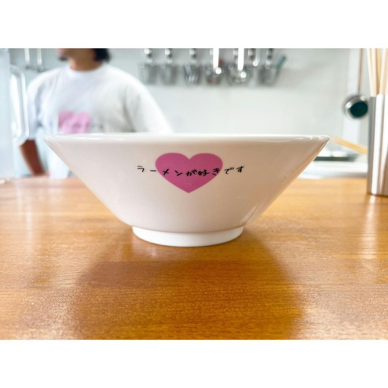 当店で使用しているかわいいハートマークのロゴが入った丼です。