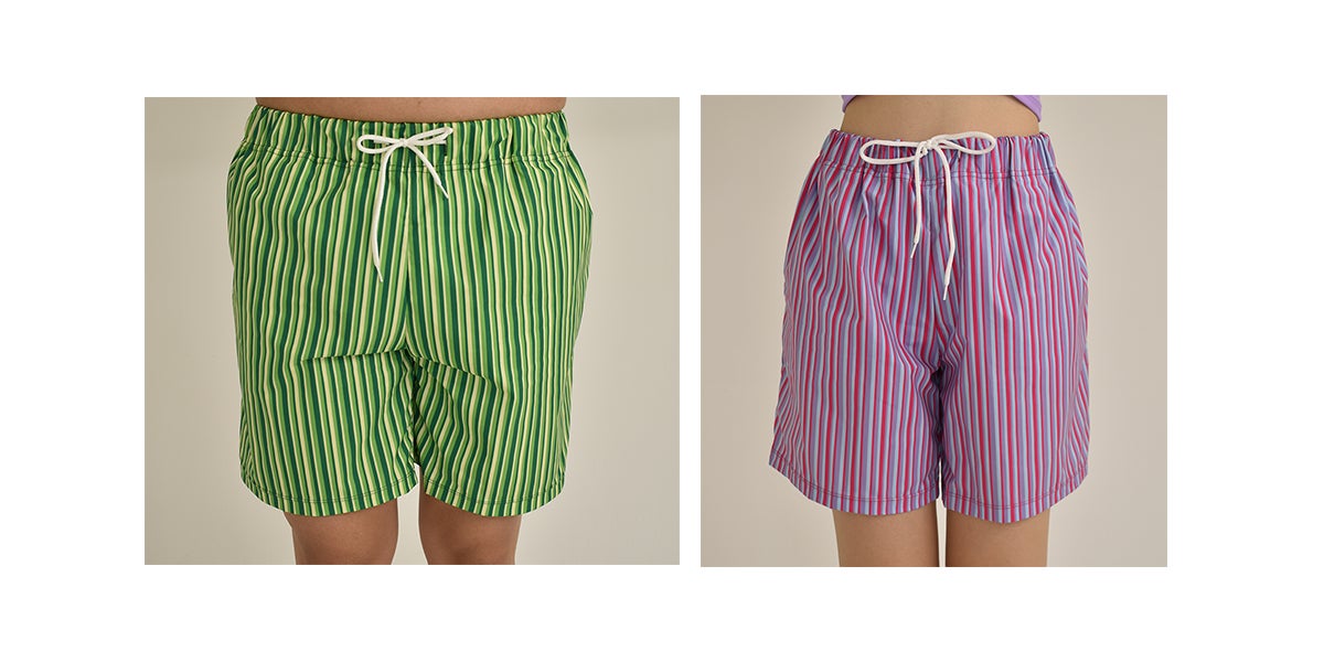 性別問わず着用できる「ジェンダーニュートラル」なサーフパンツと水着トップスの合計4品。