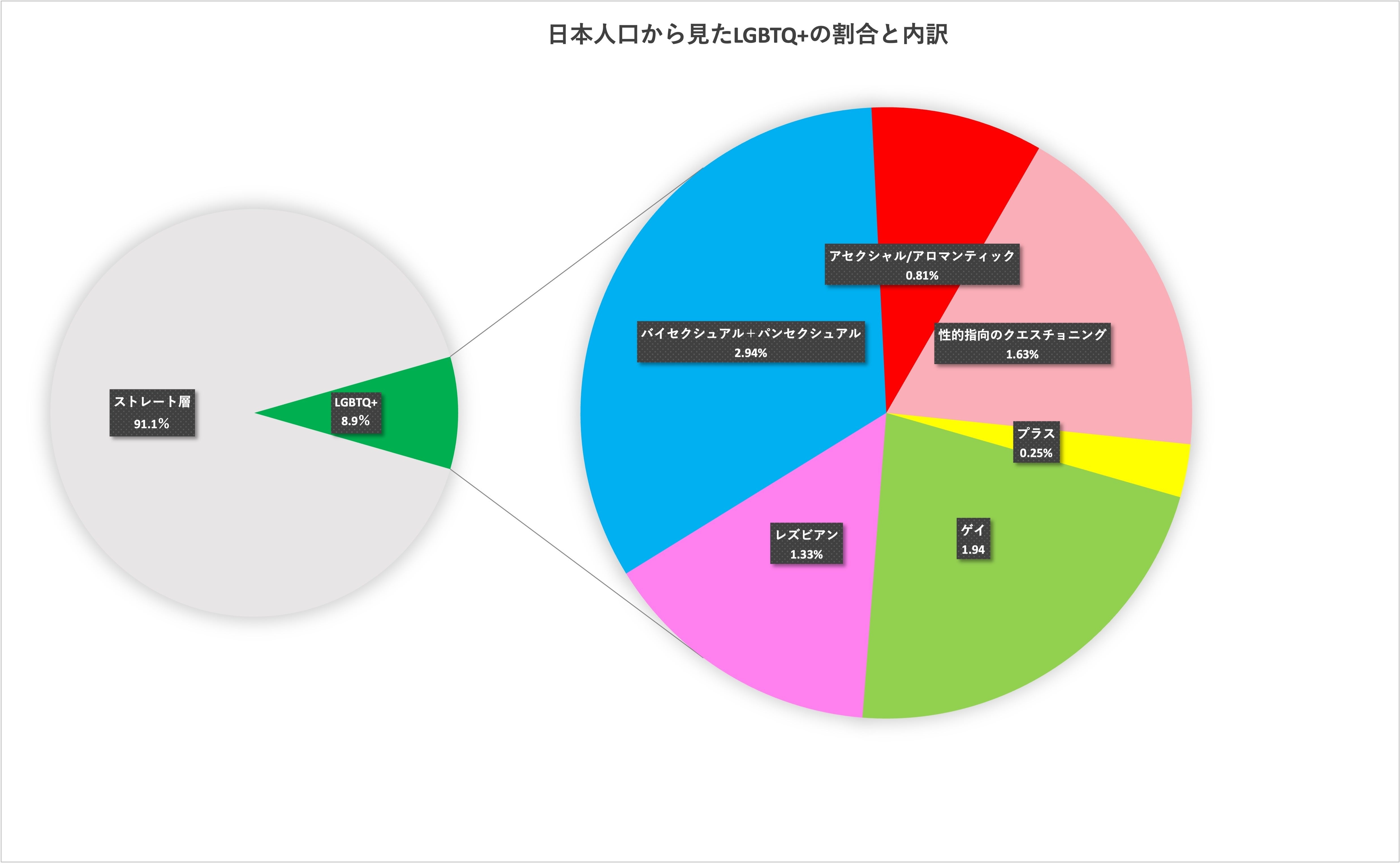 LGBTQ+当事者は日本の人口の約8.9%と言われています。