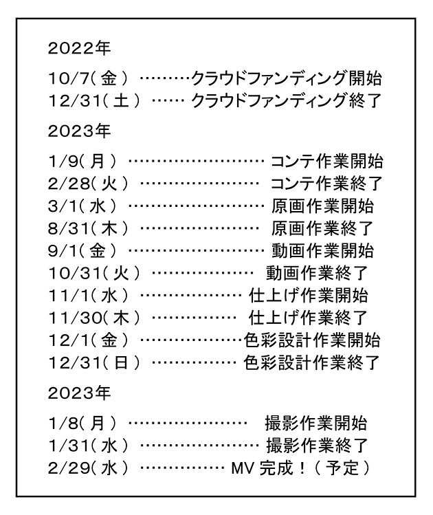 ※アニメのミュージックビデオは、年1本程度のペースで、継続的に製作して行くことが出来ればと思っています。