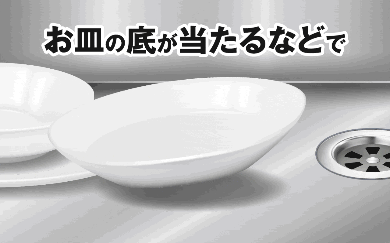ゴシゴシ磨きや、お皿の底、野菜から出る砂がシンクに無数の細かな傷をつけます。古いコップに茶渋がつきやすいように、この細かな傷に汚れが入り込んで落ちにくくなり、雑菌やぬめりの原因となるのです。