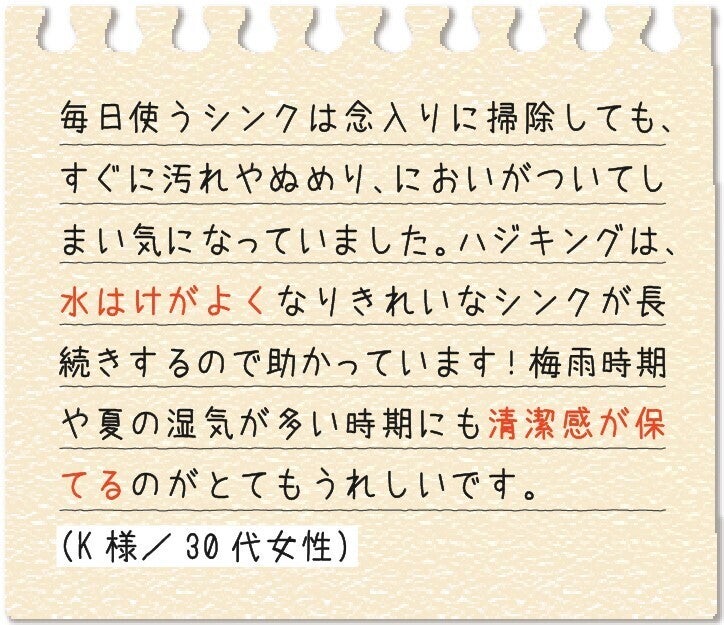 「シンクがいつもピカピカで気持ちいい」「日々のお掃除がラクになった」