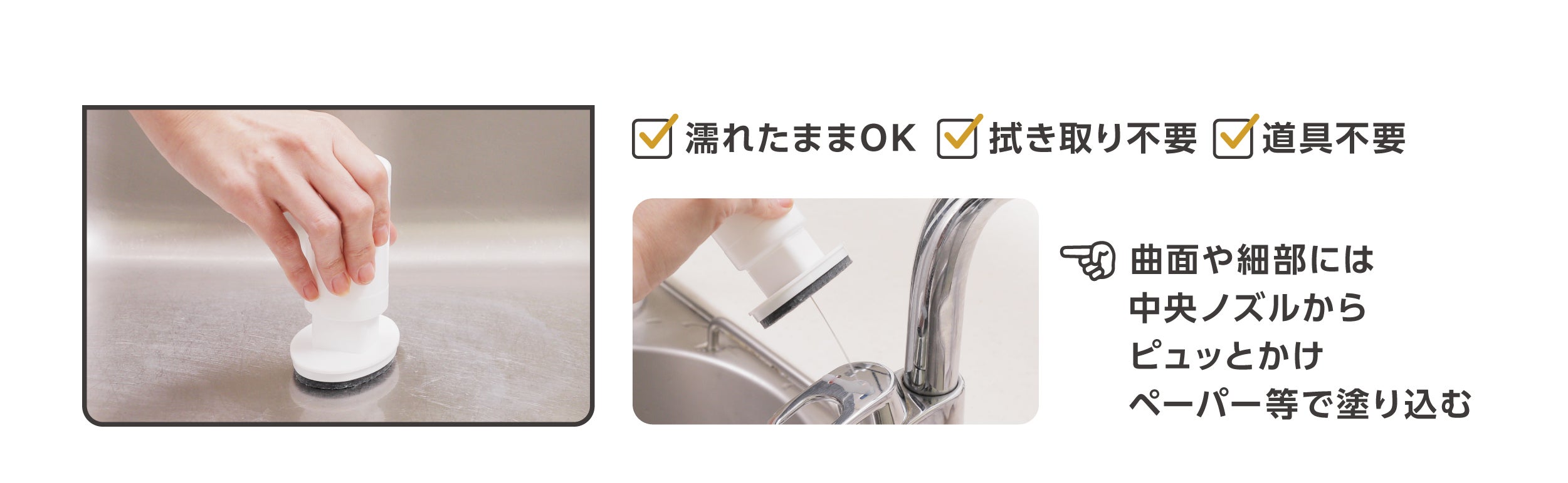 ぬめりやすい排水溝や三角コーナーへの使用もおすすめ!撥水・防汚効果で清潔をキープします。