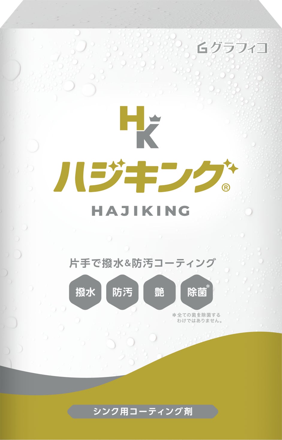 特別な道具は必要なし。片手でクルクル塗り込むだけで、汚れも水もサーっとはじいて見た目もピカピカの感動仕上げ。「ハジキング」は、シンクコーティングがとっても身近になる画期的な商品なんです!
