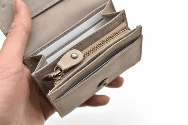 中央の仕切りで仕分け収納ができるので、一万円札は奥に、よく使う千円札は手前に。といった種類分けが可能です。