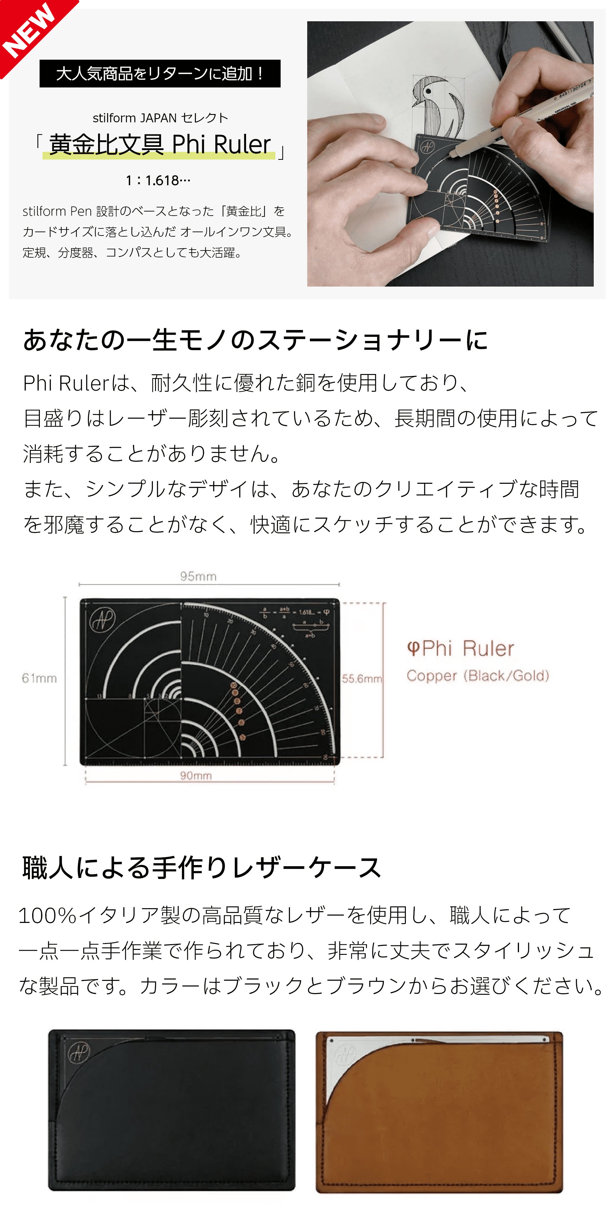 2023/07/30 13:29平素より、stilformをご愛顧いただき誠にありがとうございます。stilform JAPAN セレクト!TP Penや、ヘキサゴナルルーラーなどの商品を展開する「Yuan design Studio」より、発表された新商品「T Ruler」の日本初上陸キャンペーンは本日18時終了です。日常でも大活躍する三角スケール!「T3 Ruler」は、磁石によってその三角スケールを3つに合体させ、あらゆる機能を付加した画期的なルーラーです。【キャンペーンページ】https://www.makuake.com/project/t3ruler/是非この機会にチェックしてみてください。今後とも、よろしくお願い致します。stilform JAPAN もっと見る文具・チタン好き必見!サマーセール開始!明日23:59までの2日間限定のBIGチャンスです!