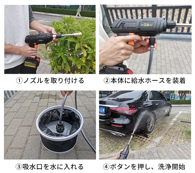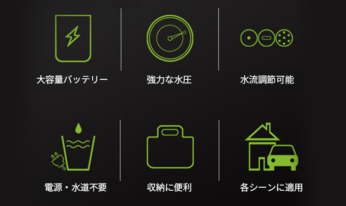 1.5kgの軽量さ&コンパクトデザインで持ち運びが便利。車やバイクの洗車から、コンクリートや家の外壁の汚れ、お庭やベランダなどあらゆる場所を水の衝撃力で洗い落とします。また、工具や農具の泥落としや、キャンプや釣り用品の洗浄など仕事から趣味にまで幅広く使用できます。