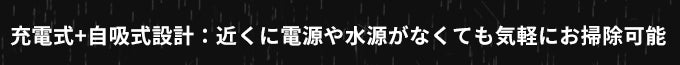 取り外し可能な20000mAh超大容量バッテリーを搭載。フル充電で最大70分まで連続稼働可能で、広い範囲の洗浄に最適!