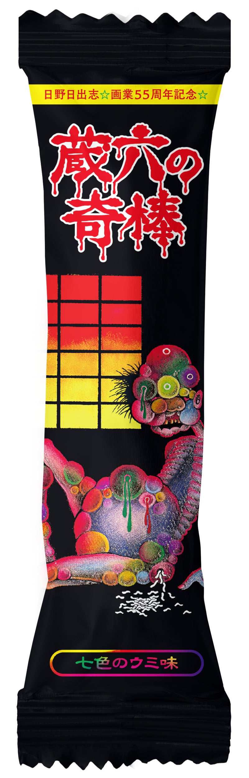 『蔵六の奇病』がデザインされた5,000本(500袋)限定生産の貴重なスナック菓子です。
