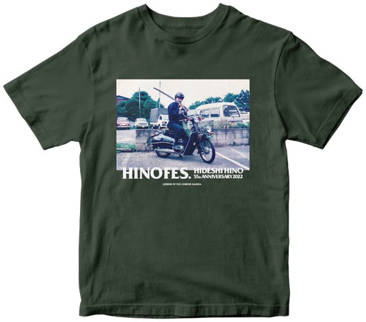 日野先生のプライベート写真(1995年撮影)がプリントされたTシャツ(フォレストグリーン)です。黒地にモノクロもございます。