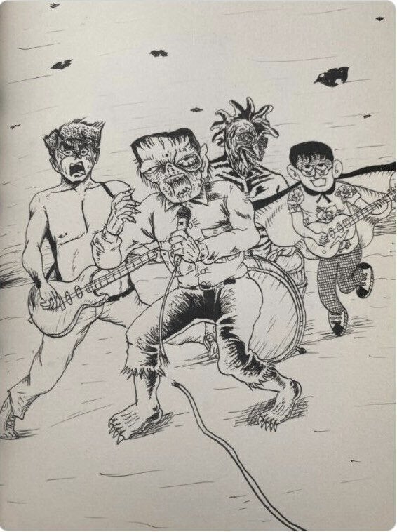 2022/06/28 01:48ご支援いただいた皆様、誠にありがとうございます。残すところ2日間となりました。6月30日(木)23:59までとなります。画像は以前、浅野忠信さんがTwitterに投稿されたイラストです。日野先生の『地獄小僧』の大雄少年、つのだじろう先生の『恐怖新聞』の鬼形礼、楳図かずお先生の『14歳』のチキン・ジョージ、藤子不二雄Ⓐ先生の魔太郎と超豪華メンバーで最恐バンドを結成。9月27日(火)開催の日野フェスも是非、皆様に楽しんでいただけるレジェンドな音楽祭にしてまいります。宜しければ日野フェスグッズをGETしていただいて当日ご一緒に盛り上げていただきたいです!最後までお力添えを何卒、宜しくお願いいたします。 もっと見る